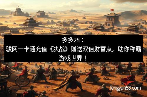 财富点是《决战》游戏中的重要货币,可以用来购买丰富的装备、提升角色的战力,甚至还可以获得稀有的道具和福利。在游戏中,拥有足够的财富点,你将能够更加轻松地提升角色的等级、强化装备,并且在各种激烈的战斗中占得先机。而通过骏网一卡通充值,赠送的双倍财富点将使得这一切变得更加轻松和快速,极大提升了玩家的游戏体验。