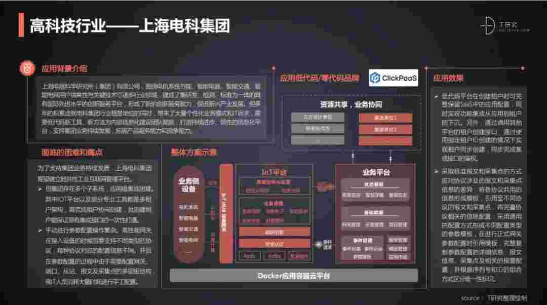 上海电器科学研究所(集团)有限公司,,,,围绕电机系统节能、、、、智能电器、、智能交通、、智能电网用户端共性与关键技术等诸多行业领域,,,建成了集研发、、、检测、、标准为一体的具有国际先进水平的创新服务平台,,形成了新的创新服务能力,,,促进新兴产业发展。。。但多年的积累造就电科集团行业翘楚地位的同时,,,,带来了大量个性化业务模式和IT诉求,,,,需要低代码新工具、、、、新方法为内部信息化建设团队赋能,,,,打造持续进步、、、、领先的信息化平 台,,,,支持集团业务持续发展,,拓展产品服务能力和竞争能力。。。。